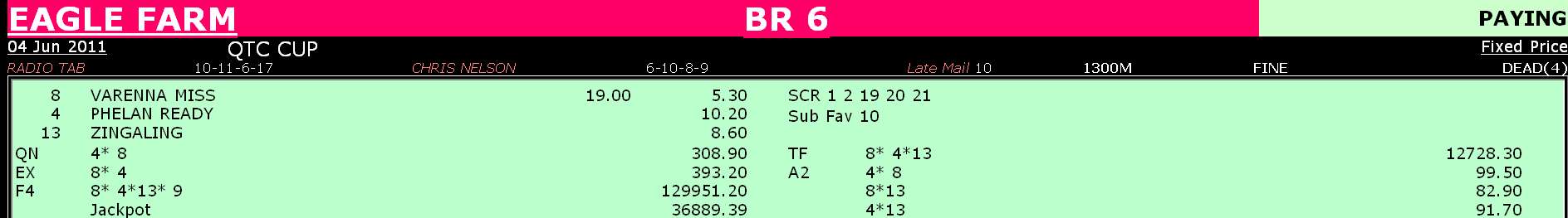 Was doing some research on Saturdays races and noted that had you taken a random approach ( no form study) of just backing the 4 yo horses in race 6 in Brisbane as attached you would have scored and beaut set of divs. 1st, 2nd ,3rd and 4th! There were only 6 4 yo horses in the race!