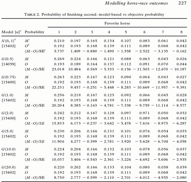 It comes from the same Berkeley article you alude to in Post 1, RP(did you even read 4. Concluding Remarks OR just look at the pics ?!) All models suffer from favorite - longshot bias i.e. the probability of finishing second or third is overestimated for horses which have a high probability of winning and underestimated for those which have a low probability of winning. Kind of makes sense when you think about it, or maybe it doesn't? Good night. LG