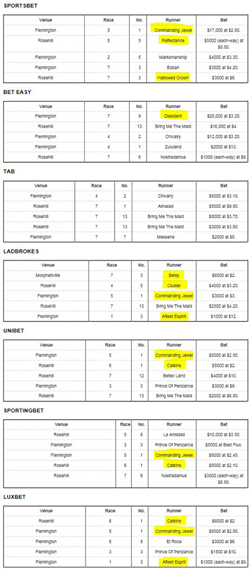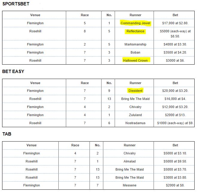 "....Maureen asked me the other day about these "big bets" that are spruiked by the likes of sportingbet etc. who are these people that are "allowed" to place these types of bets?? wish i had an answer for her!!."